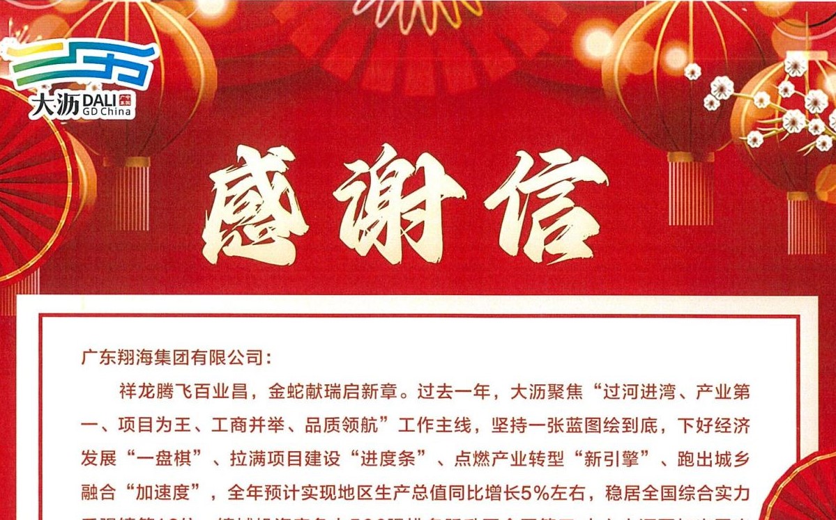 开云集团中国有限公司官网深感荣幸,新春之际收到了一封来自大沥镇政府的感谢信。作为大沥的本土企业,我们深知企业的成长离不开当地政府和社会各界的支持与厚爱。在此,我们衷心感谢大沥镇委镇政府,感谢各位合作伙伴的鼎力支持和信任。 展望未来,我们将继续深耕行业,不断提升自身的核心竞争力。同时,我们也期待与各位合作伙伴保持更加紧密的合作关系,共同开创更加美好的未来,建设高质量发展新大沥。 在此,广